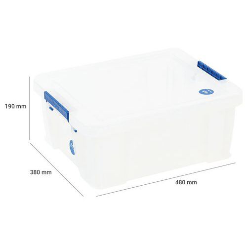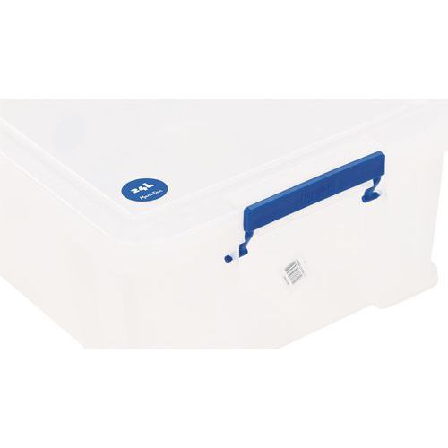 Caja de organización resistente y muy estable. Práctica y fácil de transportar gracias a las asas. Identifique rápidamente los objetos que se encuentran en su interior gracias a su transparencia. Fabricado en el UK NSF certificado Carga máx. (kg) : 200 kg