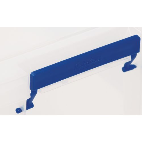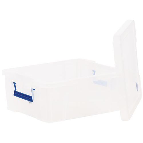 Caja de organización resistente y muy estable. Práctica y fácil de transportar gracias a las asas. Identifique rápidamente los objetos que se encuentran en su interior gracias a su transparencia.