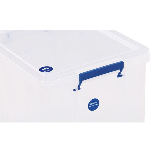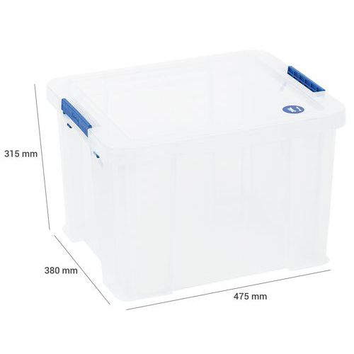 Caja de organización resistente y muy estable. Práctica y fácil de transportar gracias a las asas. Identifique rápidamente los objetos que se encuentran en su interior gracias a su transparencia.