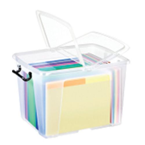 Caja con múltiples espacios para guardar o archivar documentos y artículos. 2 sólidas asas con clip que garantizan un cierre eficaz. Paredes macizas con refuerzos en las 4 caras para una solidez excelente. Forma cónica que permite apilarlas. Apilable con total estabilidad. Ideal para las tarjetas de visita. Fabricado en el UK Garantía al cliente : 5 años