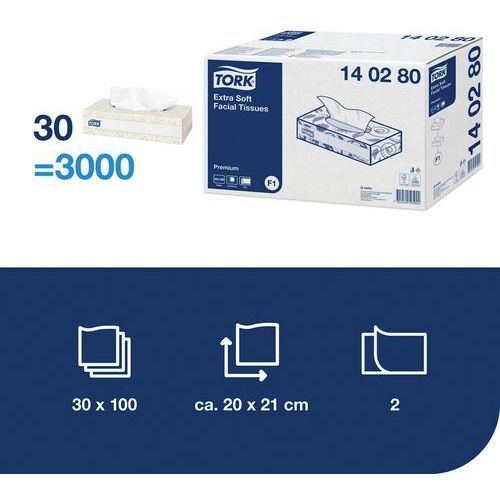 | Nombre del producto | Caja de pañuelos, N.º de hojas/paquete: 100, Tipo: Pañuelo, Longitud Hoja: 22.5 cm, Anchura Hoja: 11.5 cm |