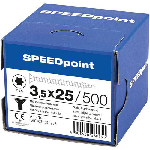 Caja de tornillos de cabeza avellanada multiusos TXØ de 3,5 a 5 mm - SpeedPoint