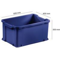 Fondo y paredes macizos: mayor solidez. Caja apilable con una higiene irreprochable para almacenamiento seguro de sus productos. Seguridad durante el transporte por las asas reforzadas. Estabilidad máxima en los transportadores por el fondo plano. Fabricado en la UE Garantía al cliente : 3 años Carga máx. (kg) : 35 kg