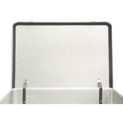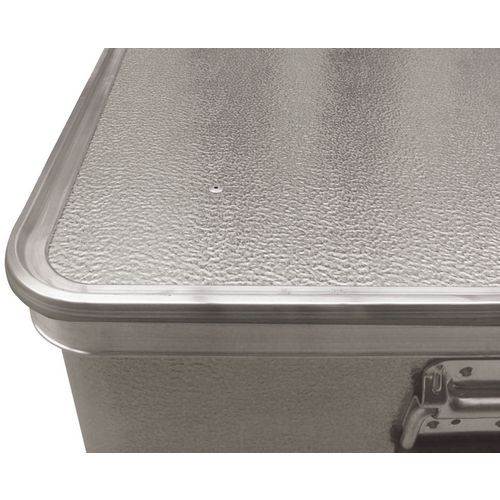 Caja de transporte de aluminio estética y robusta. Acabado redondeado de los ángulos y perfiles para ganar espacio. Material con una resistencia muy alta a la corrosión y a las altas temperaturas. Manipulación fácil de la caja gracias a las asas con resorte. Tapa con bisagras desmontable con junta de goma maciza.