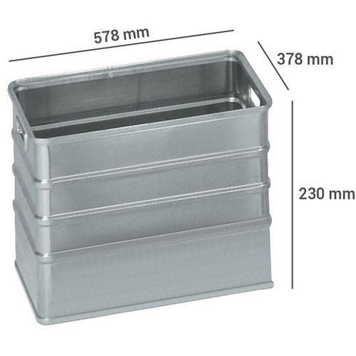 | Nombre del producto | Caja de transporte de aluminio, Capacidad: 36 L, Altura total: 230 mm, Anchura total: 378 mm |