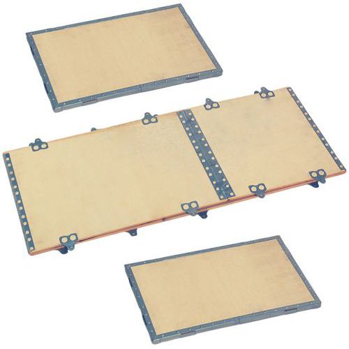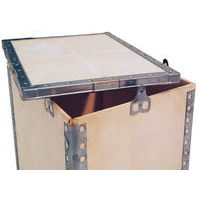 Caja de transporte para exportación de contrachapado con protección de ángulo de acero galvanizado. Resistencia excelente a las agresiones de origen mecánico y climático. Montaje, desmontaje y plegado fáciles con la ayuda de un simple destornillador. Caja precintable y personalizable mediante marcado y etiquetado. Espesor del contrachapado de la caja: 5,5 mm.