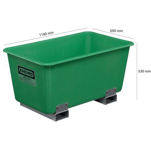 | Nombre del producto | Caja encajable con guía para horquillas, Capacidad: 300 L, Altura total: 530 mm, Anchura total: 690 mm |
