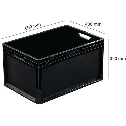 Caja Europa maciza con asas abiertas, Capacidad: 66 L, Apilable: sí, Altura total: 320 mm