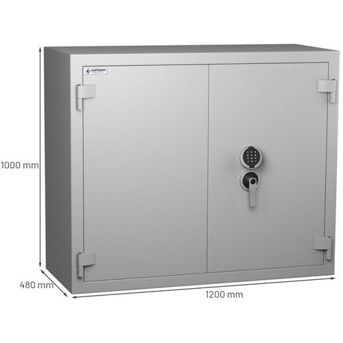 | Nombre del producto | Caja fuerte ignífuga, Altura total: 1000 mm, Anchura total: 1200 mm, Tipo de cierre: Con código |
