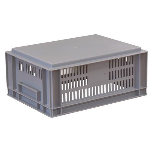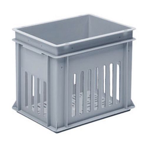 Recipiente de norma europea inalterable y sumamente resistente a los impactos. No se deforma ni siquiera si la carga no está repartida de manera uniforme. Gran estabilidad al apilarla gracias a su estructura reforzada. Contenedor plástico de transporte fácil, con asas estilo conchas. Volumen del espacio interior óptimo, con ángulos rectos. Resistente a aceites, grasas, sales, ácidos, detergentes.