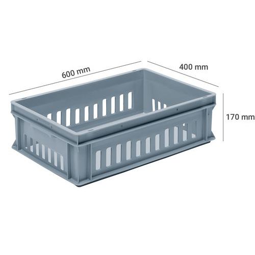 Caja norma Europa calada, Capacidad: 30 L, Apilable: sí, Altura total: 170 mm, Anchura total: 400 mm