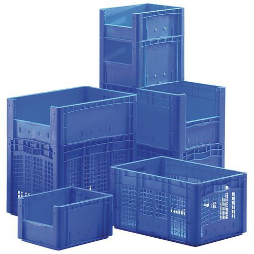 Caja norma Europa con paredes y fondo macizos - De 400 mm a 800 mm de longitud - De 21 L a 174 L