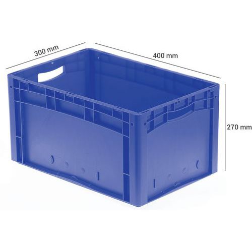 Caja norma Europa con paredes y fondo macizos, Capacidad: 25.6 L, Apilable: sí, Altura total: 270 mm Caja norma Europa con paredes y fondo macizos, Capacidad: 25.6 L, Apilable: sí, Altura total: 270 mm