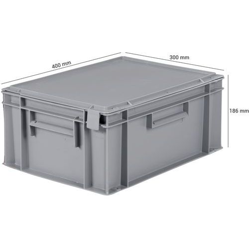 Caja norma Europa con tapa, Capacidad: 15 L, Apilable: sí, Altura total: 186 mm, Anchura total: 300 mm