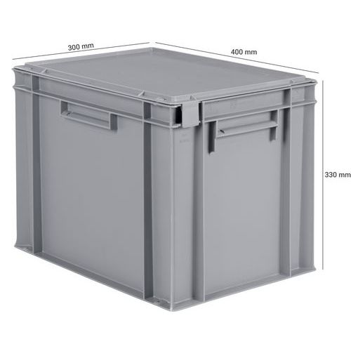 Caja norma Europa con tapa, Capacidad: 30 L, Apilable: sí, Altura total: 330 mm, Anchura total: 300 mm
