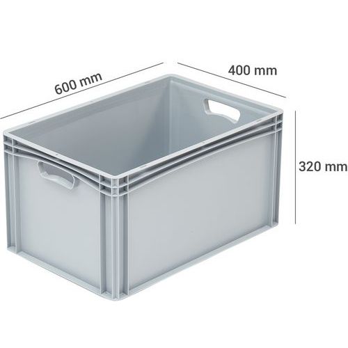 Caja norma Europa maciza, Capacidad: 64 L, Apilable: sí, Altura total: 320 mm, Anchura total: 400 mm