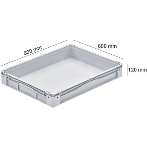 Caja norma Europa maciza, Capacidad: 49 L, Apilable: sí, Altura total: 120 mm, Anchura total: 600 mm