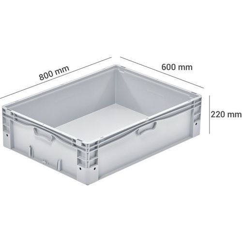 Caja norma Europa maciza, Capacidad: 91 L, Apilable: sí, Altura total: 220 mm, Anchura total: 600 mm