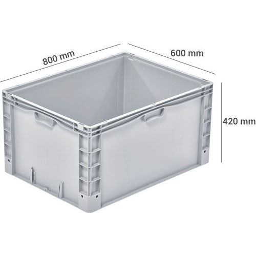 Caja norma Europa maciza, Capacidad: 168 L, Apilable: sí, Altura total: 420 mm, Anchura total: 600 mm