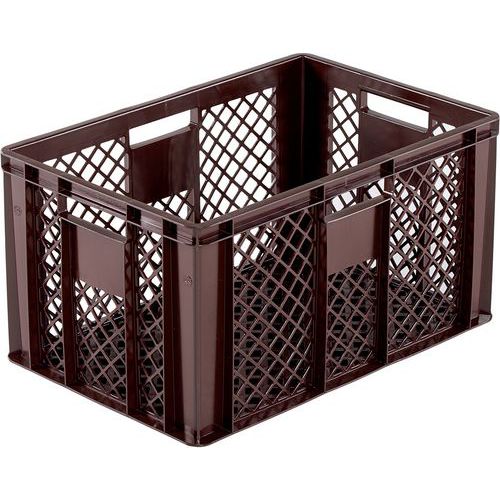 La caja norma Europa para panadería es apta para los procesos de logística alimentaria. La estructura perforada es práctica y permite una ventilación óptima del producto. La caja norma Europa para panadería es irrompible y no se deforma. Fácil de transportar gracias a sus empuñaduras ergonómicas.