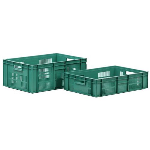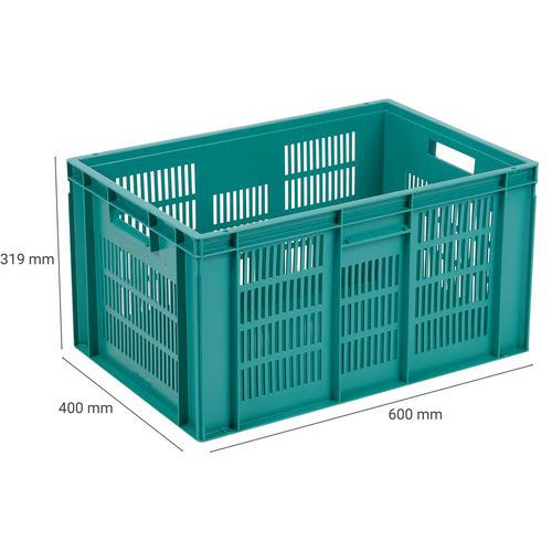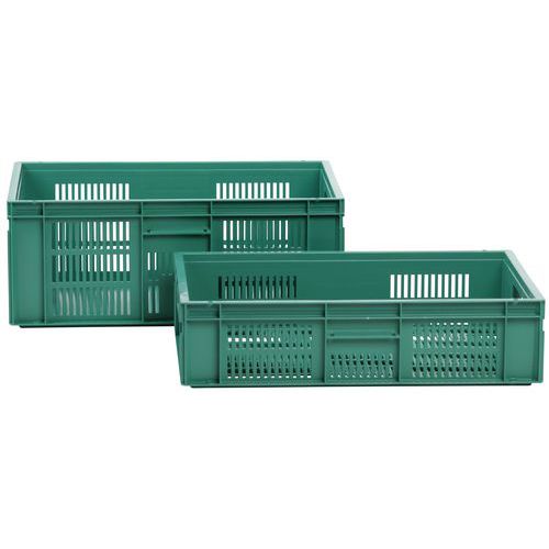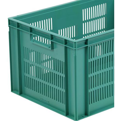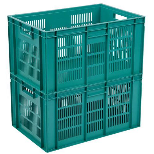 Caja norma europea regenerada – Longitud de 600 mm – 28 a 60 L – Manutan Expert Caja apilable muy robusta. Muy estable al apilarla gracias a sus rebordes reforzados.