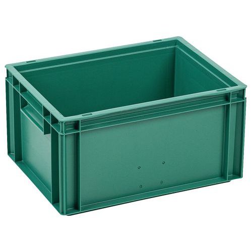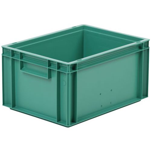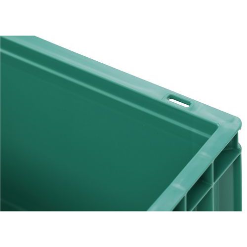 Caja norma europea regenerada – Longitud de 300 a 600 mm – 4 a 60 L – Manutan Expert Caja apilable muy robusta. Muy estable al apilarla gracias a sus rebordes reforzados.