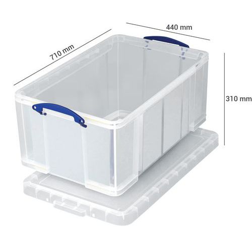 Identificación rápida del contenido gracias a su estructura translúcida. Totalmente reforzado para una mayor resistencia a la carga y al aplastamiento. Apilable con o sin tapa entre cajas de las mismas dimensiones. Protección del contenido contra el polvo y la humedad. Fácil de transportar mediante las largas asas. Zona para etiquetas autoadhesivas. Fabricado en el UK Garantía al cliente : 3 años Carga máx. (kg) : 100 kg