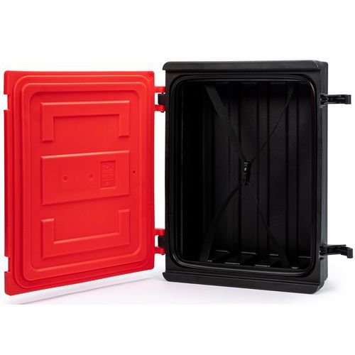 | Nombre del producto | Caja para mangueras contra incendios, Material: Polietileno, Color: Rojo/negro, Altura total: 610 mm |