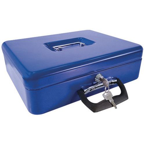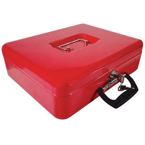 - Caja de caudales con llave – Manutan Expert Caja metálica con cerradura de llave. Práctica con su asa de sujeción metálica integrada en la tapa.