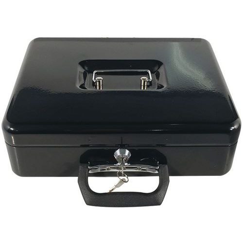 - Caja de caudales con llave – Manutan Expert Caja metálica con cerradura de llave. Práctica con su asa de sujeción metálica integrada en la tapa.