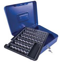 Caja para monedas con monedero, Color: Azul, Ancho: 240 mm, Longitudes: 300 mm, Altura: 90 mm