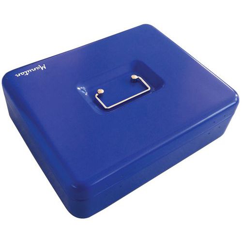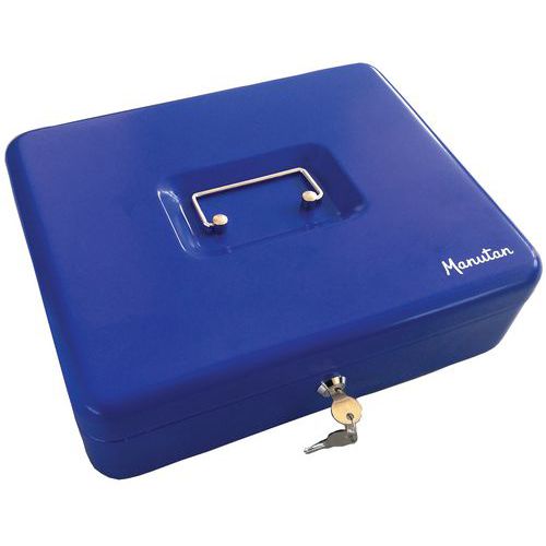 Caja de caudales con monedero – Con llave – Manutan Expert Caja de caudales metálica con monedero integrado para organizar monedas. Práctica con su asa de sujeción metálica integrada en la tapa.