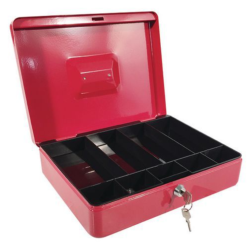 Caja para monedas Eco, Color: Rojo, Ancho: 230 mm, Longitudes: 300 mm, Altura: 85 mm, Materiales: Acero
