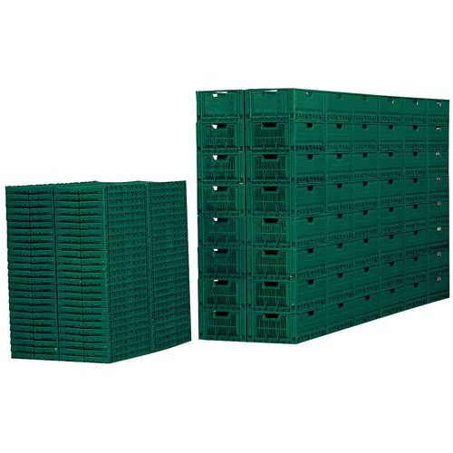 - Caja plegable, apilable y paletizable con productos acordes a la norma Europa.