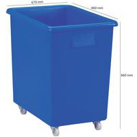 Gran manejabilidad gracias a sus 4 ruedas pivotantes. Caja encajable en vacío. Fabricado en el UK Carga máx. (kg) : 50 kg Alimentario