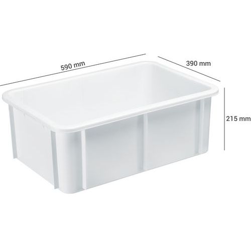 Caja de plástico rectangular para alimentos conforme a las dimensiones estipuladas en la norma Europa.