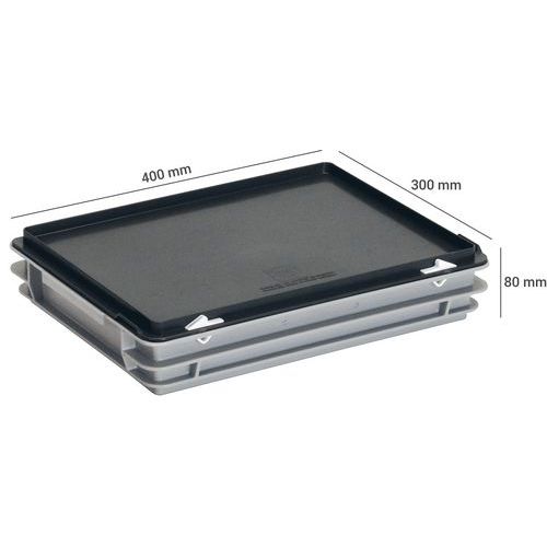 Cajas con tapa RAKO color gris, Capacidad: 5 L, Apilable: sí, Altura total: 80 mm, Anchura total: 300 mm