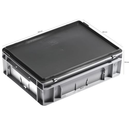 Cajas con tapa RAKO color gris, Capacidad: 10 L, Apilable: sí, Altura total: 135 mm, Anchura total: 300 mm