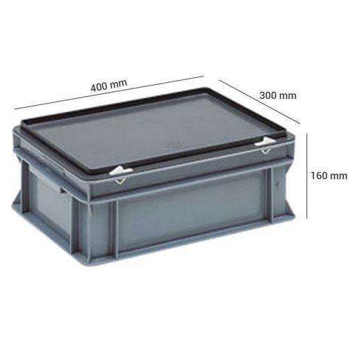 Cajas con tapa RAKO color gris, Capacidad: 12 L, Apilable: sí, Altura total: 160 mm, Anchura total: 300 mm
