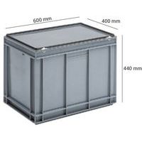 Cajas con tapa RAKO color gris, Capacidad: 90 L, Apilable: sí, Altura total: 440 mm, Anchura total: 400 mm