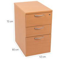 | Nombre del producto | Cajonera fija de madera, Material: De melamina, Altura total: 72 cm, N.º cajones: 3, Anchura total: 42 cm |