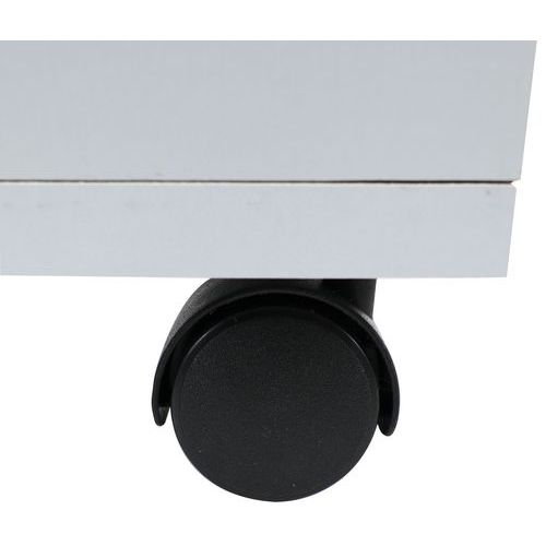 Cajonera con cajones de tableros de partículas contrachapadas melaminadas. Mobiliario equipado con ruedas anti-vuelco. Cierre con cerradura de cilindro (para 1 solo cajón). Un programa eficaz y robusto para una instalación simplificada