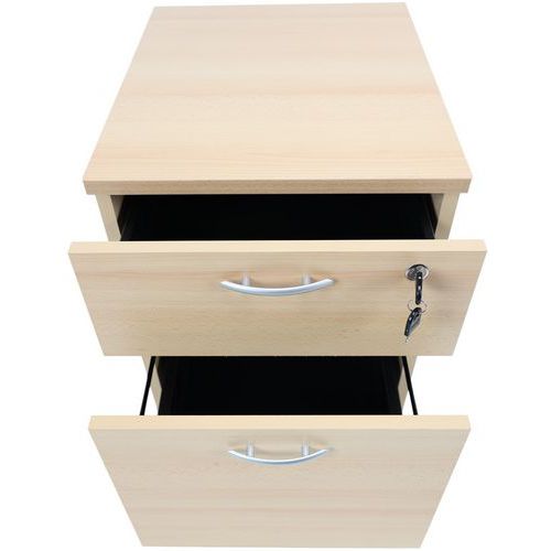 Cajonera con cajones de tableros de partículas contrachapadas melaminadas. Mobiliario equipado con ruedas anti-vuelco. Cierre con cerradura de cilindro (para 1 solo cajón). Un programa eficaz y robusto para una instalación simplificada
