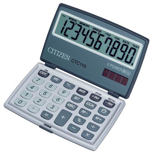 | Nombre del producto | Calculadora Citizen CTC-110, Tipo: Bolsillo, Color: Gris, Longitud: 106 mm, Ancho: 65 mm, Espesor: 14 mm |