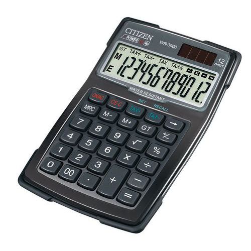 | Nombre del producto | Calculadora de bolsillo estanca Citizen, WR-3000, Tipo: calculadora, Color: Negro, Longitud: 152 mm |