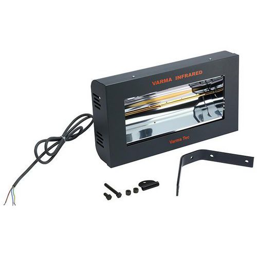Este calefactor eléctrico de infrarrojos resistente al agua se adapta perfectamente a espacios interiores y a entornos exteriores. Dispone de una lámpara intercambiable que facilita y optimiza el mantenimiento. Modelo orientable para su instalación en la pared o en el techo. Calor inmediato y bajo consumo eléctrico. Este calefactor compacto permite calentar grandes superficies de entre 13 y 18 m2.