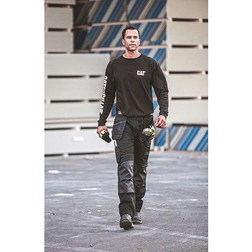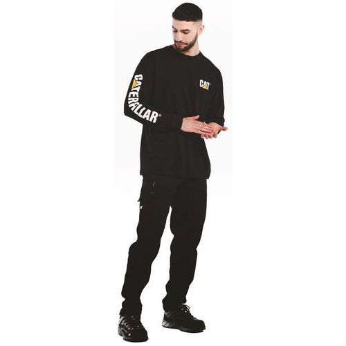 - Logotipo CAT impreso en blanco sobre el pecho, a la izquierda y en la manga derecha.