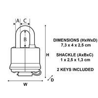 | Nombre del producto | Candado de acero laminado con llaves 312EURD, Color: Azul, Longitud: 25 mm, Arco Ø: 10 mm, Nº de pasadores: 4 |