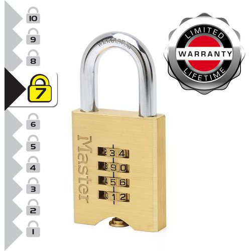 | Nombre del producto | Candado de combinación de latón macizo, Arco Ø: 10 mm, Nº de ruedas: 4, Anchura Abertura: 50 mm |