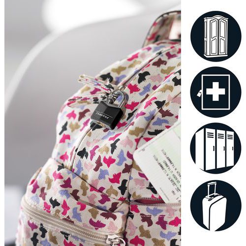 | Nombre del producto | Candado de llave de aluminio macizo, Color: Negro, N.º de llaves: 2, Arco Ø: 3 mm, Altura: 1.1 cm |